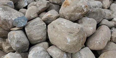 Large rocks used for retaining walls, erosion control, and wire-mesh structures.